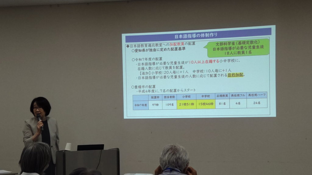 その後「日本語初期支援コースの可能性~子どもたちの明るい未来のために~」と題し、元豊橋市教育委員会の築樋博子氏による講演が行われました。